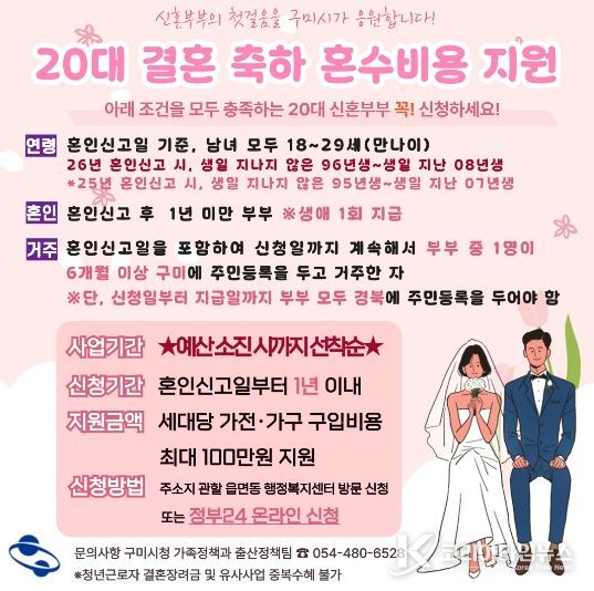 김장호 구미시장은 “결혼 부담을 줄이는 일은 행정의 역할”이라며 “청년과 신혼부부가 구미에서 미래를 설계하도록 실질적인 지원을 계속 확대하겠다”고 말했다.