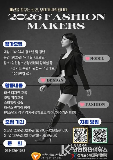 코리아타임뉴스 이아름 기자 | 수원시청소년청년재단 권선청소년청년센터는 패션 분야 진로에 관심 있는 청소년과 청년을 대상으로 ‘패션메이커스(Fashion Makers)’ 프로그램 참가자를 모집한다.