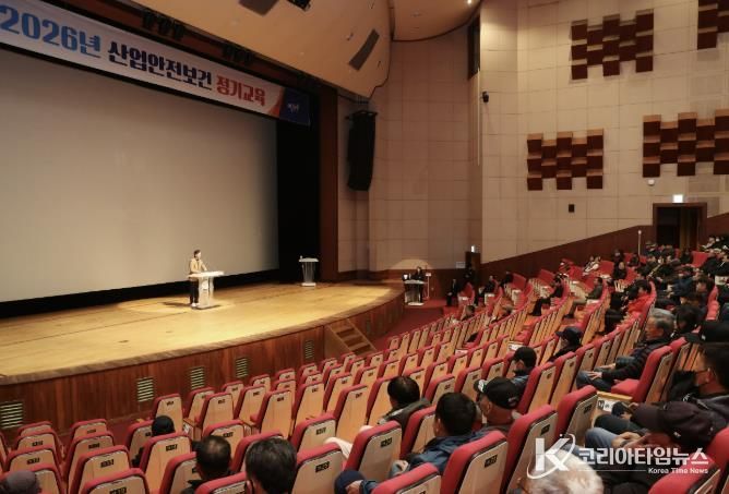 코리아타임뉴스 충남취재본부 | 보령시는 지난 12일 보령문화예술회관 대공연장에서 시 소속 공무원 및 현업근로자 400여 명을 대상으로 2026년 산업안전보건 1차 정기교육을 실시했다고 밝혔다.