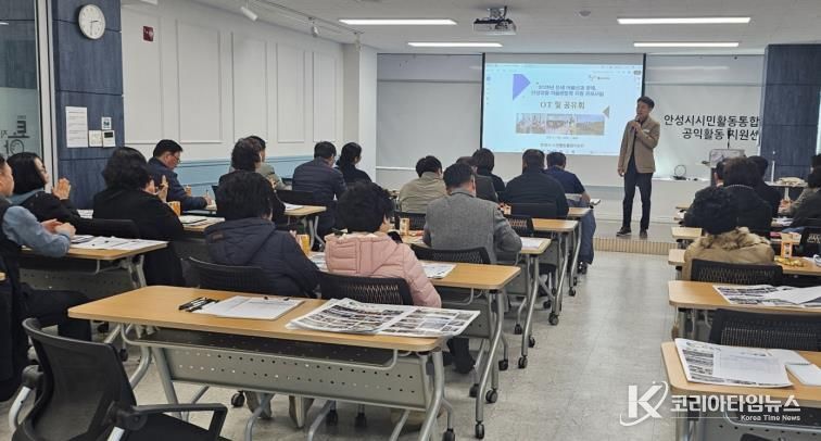 코리아타임뉴스 경기취재본부 | 안성시시민활동통합지원단 마을공동체지원센터는 2026년 마을공동체 사업인 '동네 어르신과 함께하는 안성맞춤 마을공동체'의 원활한 추진을 위해 3월 7일 공익활동지원센터 3층 가치마당에서 ‘안성맞춤 마을공동체 OT 및 공유회’를 개최했다.