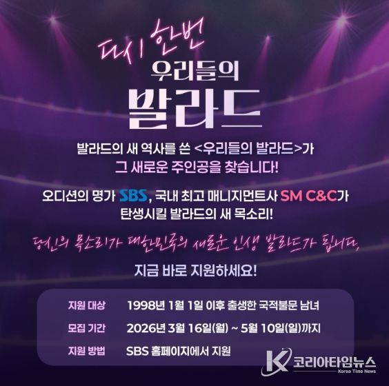 코리아타임뉴스 연예팀 | 시즌2로 돌아오는 SBS ‘우리들의 발라드’가 발라드 신화를 이을 새로운 목소리를 찾는다.