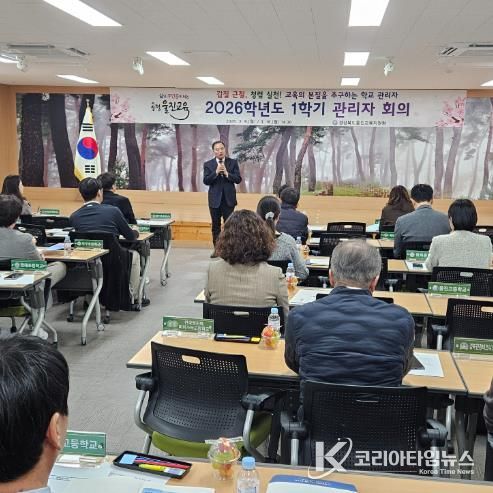 코리아타임뉴스 사회팀 | 경상북도 울진교육지원청은 3월 9일과 16일, 관내 초·중·고등학교 교장 22명과 교감 및 교무부장 25명이 참석한 가운데 학교 현장 지원과 교육과정 운영 내실화를 위한 관리자 회의를 개최했다.