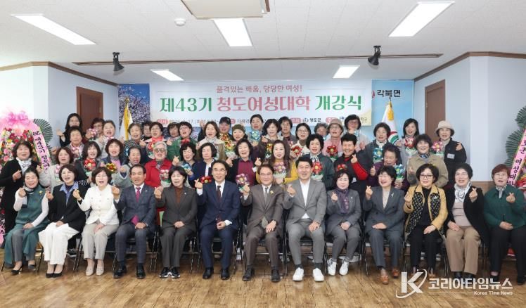 코리아타임뉴스 경북취재본부 | 청도군은 17일 오후 2시 각북면사무소 회의실에서 수강생과 지역단체장, 여성단체장 등 60여 명이 참석한 가운데 제43기 청도여성대학 개강식을 개최했다.