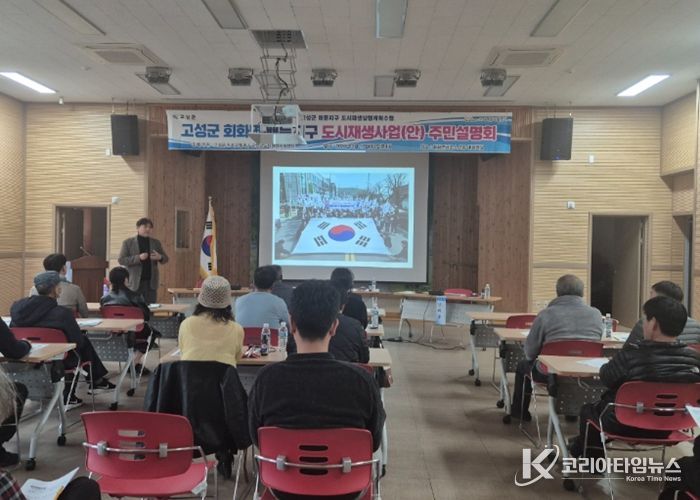 코리아타임뉴스 경남취재본부 | 고성군은 3월 17일 회화면사무소에서 배둔지구 주민협의체 회원 및 주민 40여 명을 모시고 2026년 공모 예정인 배둔지구 도시재생사업 주민설명회를 가졌다.