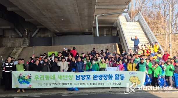 코리아타임뉴스 사회팀 | 화성특례시 만세구 장안면은 3월 17일 남양호 일원에서 장안면 사회단체협의회 주최로 ‘2026년 남양호 환경정화 활동’을 실시했다.