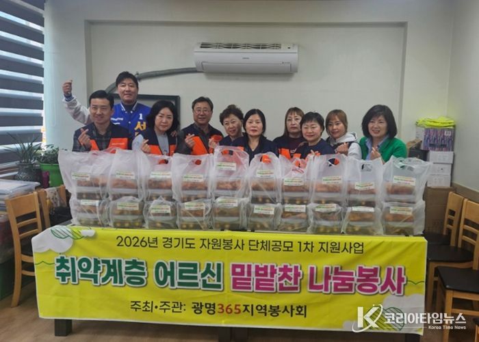 코리아타임뉴스 경기취재본부 | 광명365지역봉사회는 지난 17일 광명시 하안3동 내 홀몸 어르신 등 취약계층 50가구를 대상으로 직접 만든 밑반찬을 전달했다.