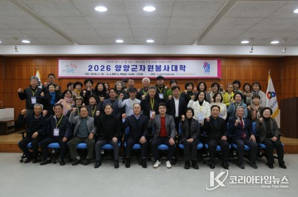코리아타임뉴스 이아름 기자 | 양양군자원봉사센터는 3월 18일 13:30, 양양군문화복지회관 2층 소강당에서 '2026년 양양군자원봉사대학'개강식을 개최했다.