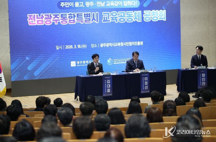 코리아타임뉴스 사회팀 | 전라남도교육청‧광주광역시교육청은 18일 광주교육청 시민협치진흥원 대강당에서 지역 주민 의견 수렴을 위한 ‘전남광주통합특별시 교육공동체 공청회’를 개최했다.