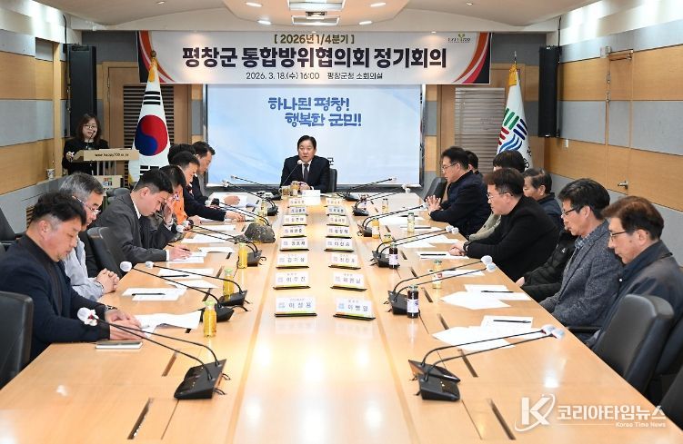 코리아타임뉴스 이아름 기자 | 평창군은 지난 18일 군청 소회의실에서 ‘2026년 1분기 통합방위협의회 정기회의’를 열고 지역 안보 태세 점검에 나섰다.