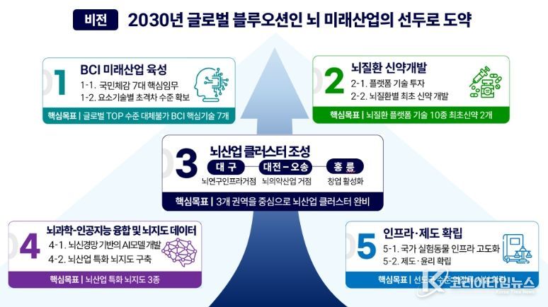 정부는 이처럼 태동하고 있는 뇌-컴퓨터 인터페이스(BCI)와 같은 뇌 미래산업의 선도자(퍼스트무버)가 될 황금시간(골든타임)을 놓치지 않기 위해 국내 뇌 연구 생태계와 인공지능, 의료, 첨단 제조(소재, 반도체 등)의 역량을 총결집하는 도전적인 연구 개발 사업(R&D 프로젝트)을 신속하게 추진한다는 계획을 발표했다.