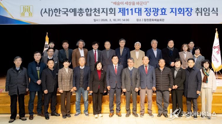 코리아타임뉴스 경남취재본부 | (사)한국예술단체총연합회합천지회는 18일 합천문화예술회관에서 제11대 정광효 지회장의 취임식을 개최했다.
