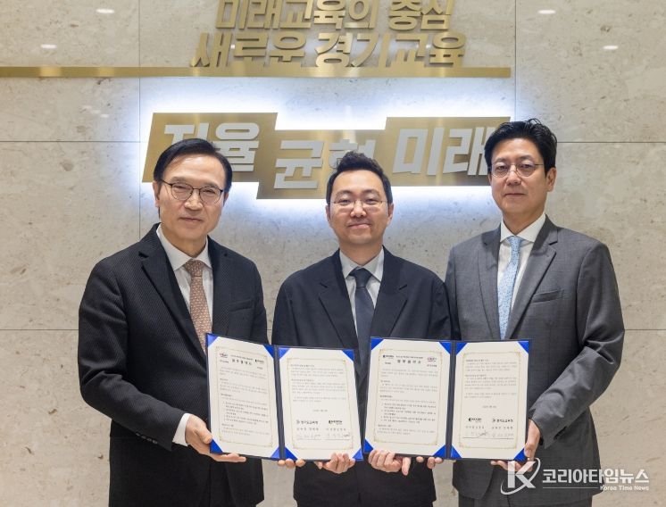 코리아타임뉴스 사회팀 | 경기도교육청이 18일 남부청사에서 넥슨재단과 경기공유학교 기반 청소년 코딩 역량 강화와 디지털 격차 해소를 위한 업무협약을 체결했다.
