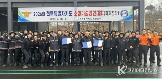 코리아타임뉴스 김태훈 기자 | 전북특별자치도소방본부는 지난 18일 전북소방교육훈련센터(장수군 소재)에서 2026년 도 소방기술경연대회(화재진압전술 분야)를 개최했다고 밝혔다.