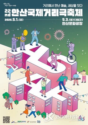 코리아타임뉴스 기동취재팀 | 안산시와 안산문화재단이 오는 5월 1일부터 3일까지 안산문화광장에서 개최되는 ‘2026 제22회 안산국제거리극축제’의 공식 슬로건과 포스터, 그리고 공연 프로그램을 전격 공개했다.
