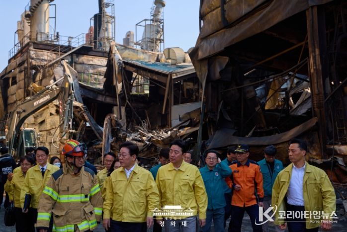 코리아타임뉴스 이아름 기자 | 이재명 대통령은 21일 오후, 20일 대전 대덕구에서 발생한 안전공업 화재 현장을 찾아 피해 상황과 구조활동 전반을 점검하고, 유가족들의 목소리를 청취했다.