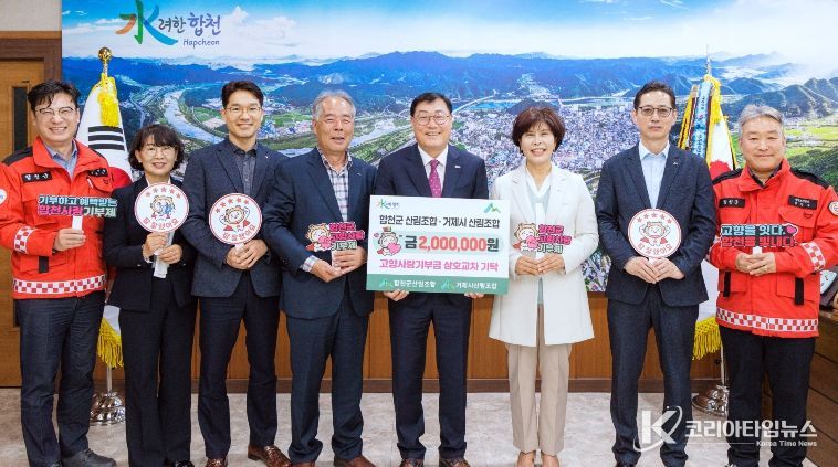 코리아타임뉴스 경남취재본부 | 합천군 산림조합과 거제시 산림조합이 고향사랑기부금 200만 원을 상호 교차 기부하며 지역 간 상생과 협력의 뜻을 실천했다.