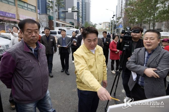 첫 방문지인 배방읍 공수리 ‘중로 3-3호(한라비발디) 개설 공사 현장’은 총 78억 원을 투입해 공수리 형제어린이공원~배방중앙침례교회 구간 440m를 왕복 2~3차로로 개설하는 사업이다.