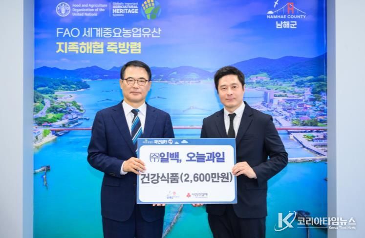 코리아타임뉴스 오영주 기자 | 주식회사 일백과 오늘과일은 지난 3월 30일 2천 600만원 상당의 건강식품(과일효소외 4종)을 남해군에 기탁했다.