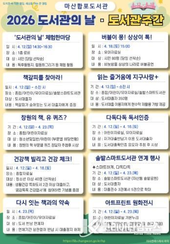 코리아타임뉴스 오영주 기자 | 마산합포도서관에서는 ‘도서관의 날’과 ‘도서관주간’을 맞아 지역 주민의 독서문화 확산과 도서관 이용 활성화를 위해 다양한 참여형 프로그램을 운영한다.