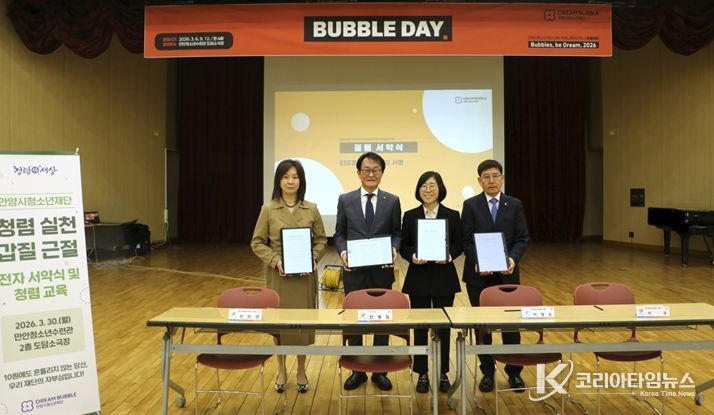 코리아타임뉴스 사회팀 | 안양시청소년재단은 지난 30일 만안청소년수련관 도담소극장에서 전 직원을 대상으로 내부 커뮤니케이션 행사 ‘버블데이(BUBBLE DAY)’를 운영하며 조직 소통과 청렴문화 확산에 나섰다.