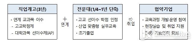 이 사업은 전문대학이 직업계고와 협력하여 교육과정을 연계하고 전문학사 취득 기간을 1학기 이상 단축함으로써, 지역 산업에 필요한 전문 기술인재를 조기에 양성할 수 있도록 올해 처음 재정지원 사업으로 추진된다.