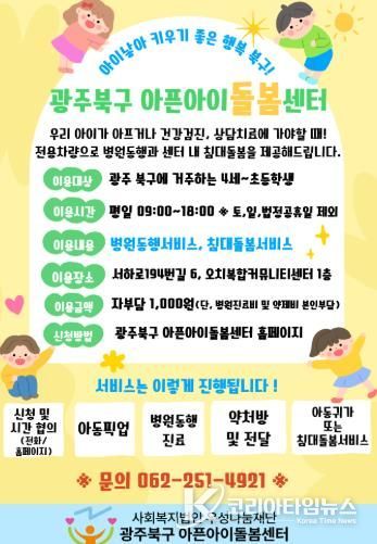 사업 대상은 북구 거주 만 4세~12세 아동이며 아픈아이 돌봄센터 누리집 또는 유선을 통해 신청할 수 있다.