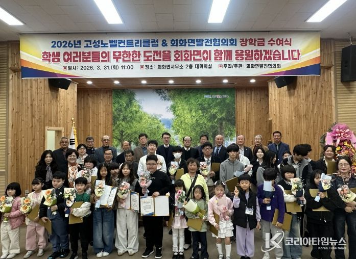 코리아타임뉴스 경남취재본부 | 고성군 회화면발전협의회(회장 권택열)에서는 3월 31일 11시, 회화면사무소 대회의실에서 2026년 노벨컨트리클럽 · 회화면발전협의회 장학증서 수여 행사를 개최했다.