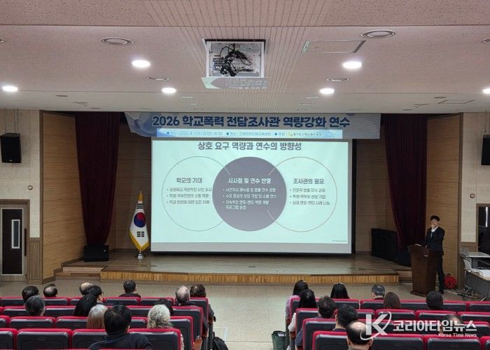 코리아타임뉴스 사회팀 | 경기도고양교육지원청은 4월 1일, 고양미래인재교육센터에서 학교폭력 사안 조사의 전문성을 높이고 교육적 해결을 강화하기 위한 『2026 학교폭력전담조사관 '함·성(함께 성장)' 역량 강화 연수』를 개최했다.