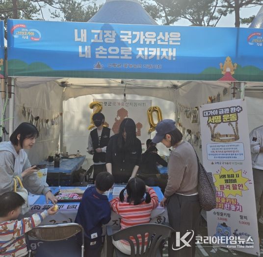 코리아타임뉴스 경북취재본부 | 고령군 국가유산 지킴이회(회장 김민규)가 지난 3월 27일부터 29일까지 3일간 열린 ‘2026 대가야 축제’에서 자원봉사 부스를 운영하며 일제강점기 국외로 반출된 ‘대가야금관’ 환수를 위한 범국민 서명운동을 펼쳐 큰 호응을 얻었다.