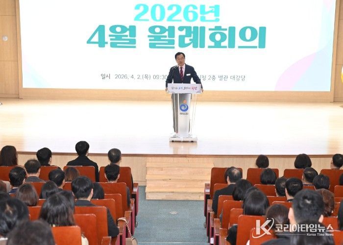 코리아타임뉴스 기동취재팀 | 하남시는 2일 시청 별관 대강당에서 직원과 시민들이 참석한 가운데 ‘2026년 4월 월례회의’를 개최했다.