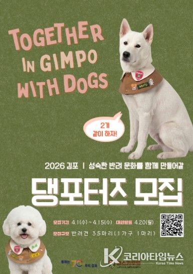 코리아타임뉴스 기동취재팀 | 김포시는 올바르고 책임 있는 반려문화 확산을 이끌 ‘김포 댕포터즈’를 모집한다고 밝혔다.