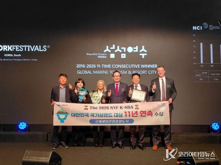 코리아타임뉴스 전남취재본부 | 여수시는 2일 오전 서울 롯데호텔에서 열린 ‘2026 대한민국 국가브랜드 대상’에서 11년 연속 국제해양관광휴양도시 부문 대상을 수상했다고 밝혔다.