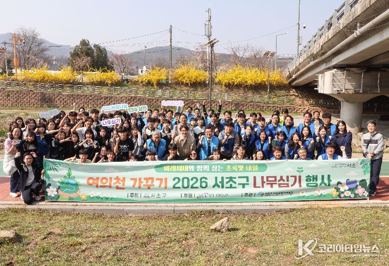 코리아타임뉴스 기동취재팀 | 서울 서초구가 SCL그룹과 함께 2일 여의천 새원교 인근에서 ‘탄소중립 실천 문화 확산을 위한 나무심기’ 행사를 열었다.