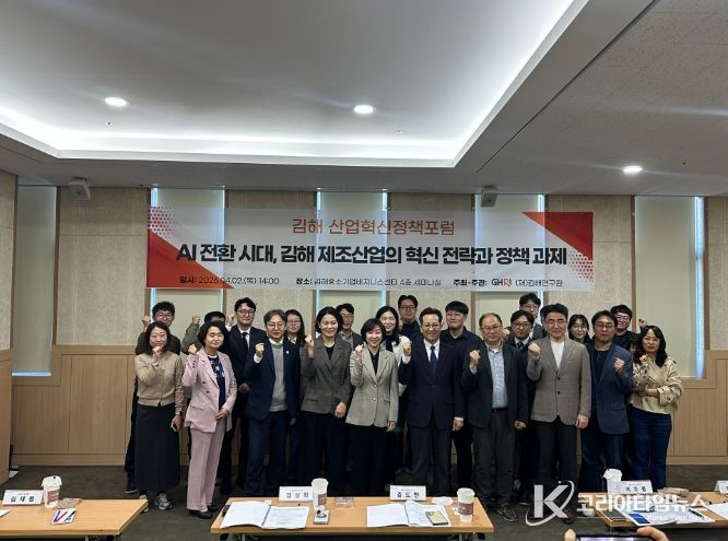 코리아타임뉴스 오영주 기자 | (재)김해연구원은 지난 2일, 김해중소기업비즈니스센터에서 ‘AI 전환 시대, 김해 제조산업의 혁신 전략과 정책 과제’를 주제로 김해 산업혁신정책포럼을 개최했다.