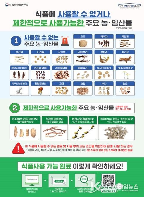 식약처는 안전성이 입증되지 않은 농·임산물 섭취로 인한 피해를 예방하기 위해 섭취 전 식품안전나라 누리집에서 식품으로 섭취할 수 있는 농·임산물의 종류 및 식용 가능 부위 등을 확인할 것을 당부했다.