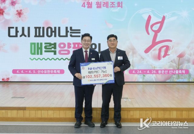 코리아타임뉴스 기동취재팀 | 양평군은 지난 4월 1일 NH농협은행 양평군지부로부터 제휴카드 적립기금 1억 256만 원을 기금 수입금으로 전달받았다고 밝혔다.