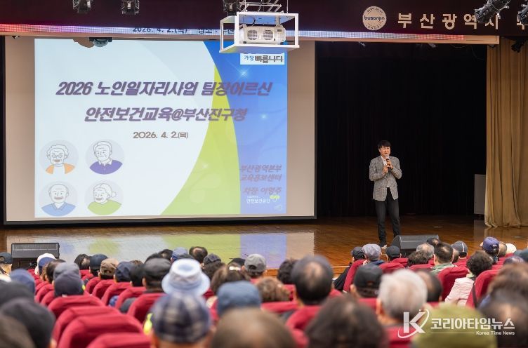 코리아타임뉴스 부산취재본부 | 부산진구는 4월 2일 부산진구청 대강당에서 노인일자리 사업단 팀장 어르신 189명을 대상으로 '노인일자리지원사업 팀장 어르신 안전교육'을 실시했다.