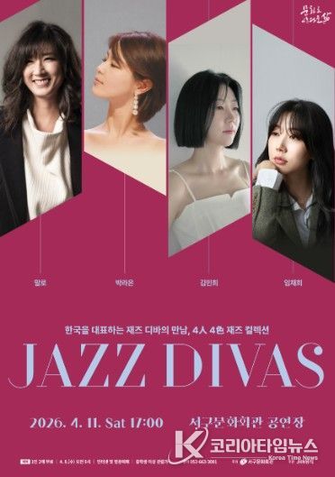 코리아타임뉴스 박찬식 기자 | 서구문화회관은 4월 11일 오후 5시 서구문화회관 공연장에서 한국을 대표하는 재즈 디바 말로, 박라온, 김민희, 임채희를 초청하여'JAZZ DIVAS'콘서트를 개최한다.