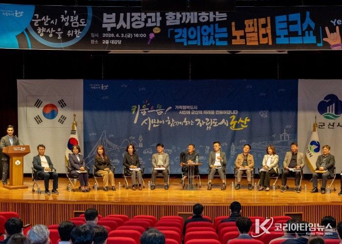 코리아타임뉴스 김태훈 기자 | 군산시는 3일 오후 시청 2층 강당에서 저연차 직원들과 간부 공무원들이 격식 없이 소통하는 ‘부시장과 함께하는 격의 없는 노필터 토크쇼’를 개최했다고 밝혔다.