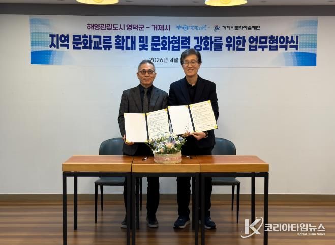 코리아타임뉴스 노승선 기자 | 영덕문화관광재단과 거제시문화예술재단이 해양관광도시 영덕과 거제의 문화예술 교류 확대와 협력 사업 추진을 위한 업무협약(MOU)을 체결했다.