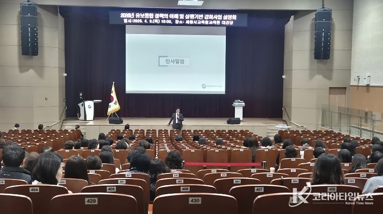 코리아타임뉴스 사회팀 | 세종특별자치시교육청은 4월 9일, 세종시교육청교육원 대강당에서 관내 유치원 및 어린이집 원장 300여명을 대상으로‘2026년 유보통합 정책 이해 및 실행기반 강화사업 설명회’를 개최했다.