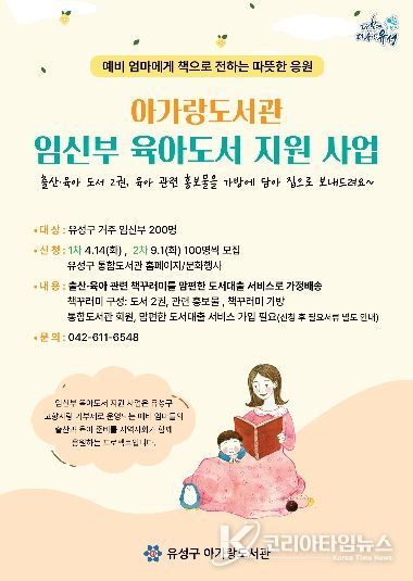 코리아타임뉴스 대전취재본부 | 대전 유성구는 아가랑도서관에서 정서적 지원을 통해 건강한 출산과 육아 준비를 돕기 위한 ‘임신부 육아도서 지원 사업’을 운영한다.