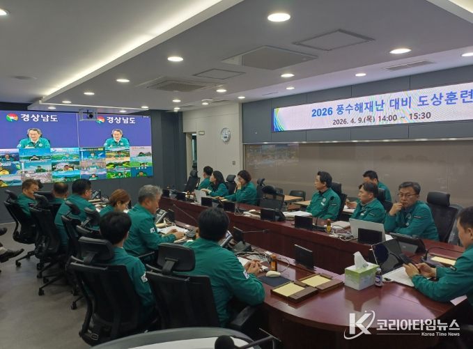 코리아타임뉴스 경남취재본부 | 합천군은 9일 오후 2시 경상남도가 도 및 시·군 재난안전대책본부를 영상으로 연결해 실시한 ‘2026년 풍수해재난 대비 도상훈련’에 참관했다.
