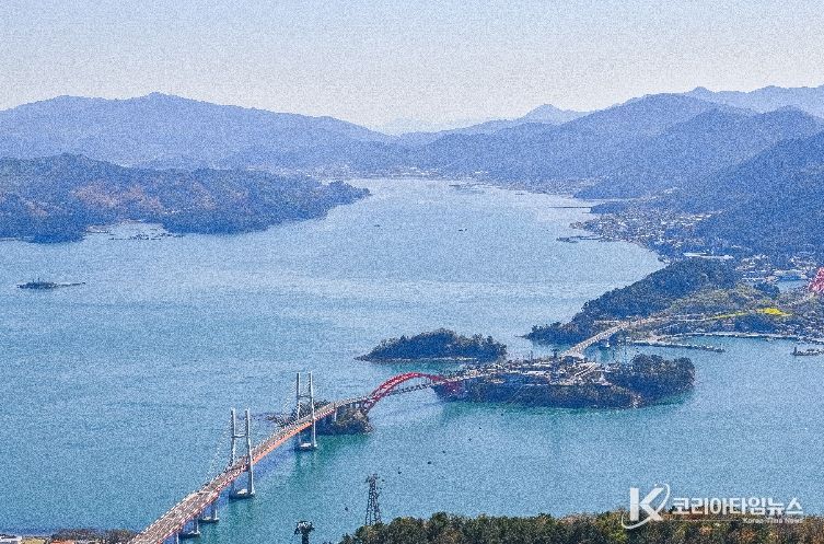 캐빈이 천천히 지상을 떠나는 순간, 지상에서 조각처럼 흩어져 보이던 장면들이 하나의 거대한 캔버스로 이어진다. 봄빛을 머금은 바다는 햇살을 받아 윤슬로 반짝이고, 창선·삼천포대교의 웅장한 실루엣이 눈높이 가까이 다가온다.