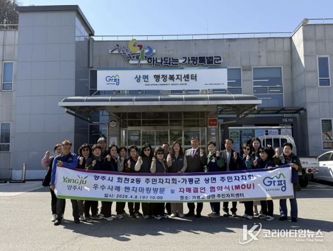 코리아타임뉴스 윤광희 기자 | 양주시 회천2동 주민자치회는 지난 8일 주민자치회 활성화를 위해 가평군 상면을 방문해 벤치마킹을 실시하고 자매결연 협약을 체결했다.