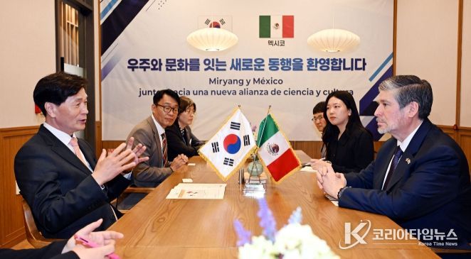 코리아타임뉴스 노승선 기자 | 경남 밀양시는 15일 카를로스 페냐피엘 소토(Carlos Peñafiel Soto) 주한 멕시코 대사가 밀양을 방문해 과학·문화 분야 상호 교류 방안을 논의했다고 밝혔다.