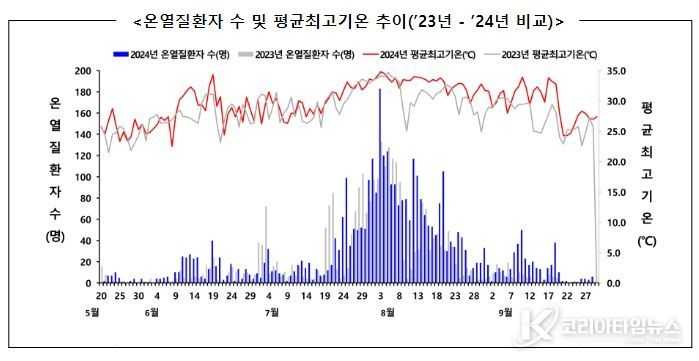 코리아타임뉴스 의료보건팀 | 질병관리청은 2024년 여름철 「온열질환 응급실감시체계」의 운영(5월 20일~ 9월 30일) 결과를 발표하였다.