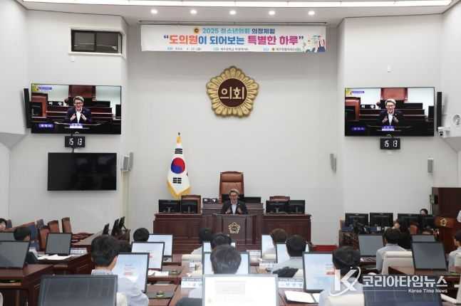 코리아타임뉴스 이아름 기자 | 제주특별자치도의회는 5월 23일 오후 3시, 본회의장에서 제주중학교 학생자치회 학생들에게 도의원이 되어보는 특별한 하루를 선사했다.