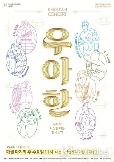 K-브런치콘서트 '우‧아‧한'은 대전국악방송과 공동 기획으로, 우리 지역 전통음악 인프라 확충과 국악의 대중화, 생활화를 목표로 마련된 프로그램이다. 국내외에서 활발히 활동하는 연주자들이 참여해 클래식·재즈 등 다양한 장르와의 경계를 넘나드는 무대를 통해 한국음악의 새로운 가능성을 제시한다.