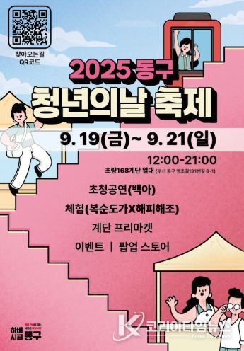 코리아타임뉴스 부산취재본부 | 부산광역시 동구는 청년들의 창의와 열정을 응원하고 지역사회와의 소통을 강화하기 위해 오는 9월 19일부터 21일까지 2025년 ‘동구 청년의 날 축제’를 개최한다고 밝혔다.